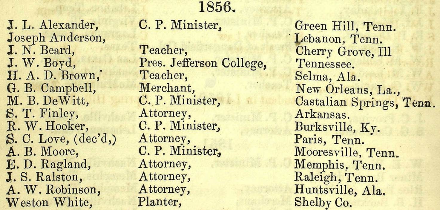 1820, at the house of Thomas D. Carr on the fourth Chickasaw bluff. Those in attendance at that time, as