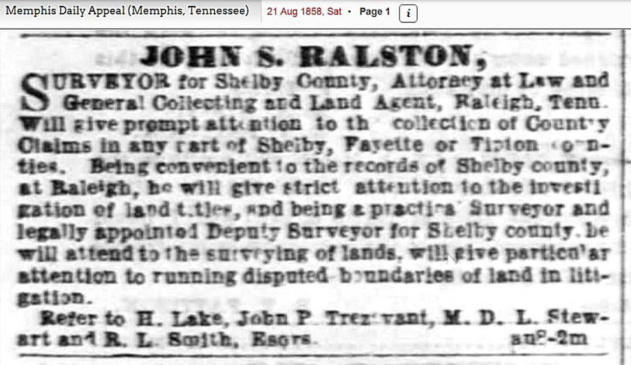 founders of Shelby County, TN. He surveyed and planned the city of Raleigh, the